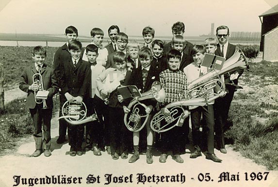 Gestartet wurde 1965 mit sieben Jugendlichen, die unter der Leitung von Josef Welters auf geliehenen Blasinstrumenten regelmäßig Unterricht nahmen. Es war eine Gruppe der katholischen Jugend der Pfarre St. Josef Hetzerath. Als diese Jugendlichen dann ihren ersten musikalischen Auftritt auf dem Feuerwehrfest in Hetzerath präsentierten, war die Begeisterung im Ort so groß, dass sich binnen vierzehn Tage zwanzig weitere Jugendliche meldeten, um bei der musikalischen Truppe mitzumachen. Die Jugendbläsergruppe Hetzerath war somit geboren und noch im gleichen Jahr wurde der Verein unter diesem Namen gegründet.